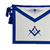 Freemasons Apron. Macoy has been making Master Mason aprons for decades. These are the finest examples of everyday use Master Mason apron found. They are 13 x 15 inches. They are beautifully trimmed in your choice of color Royal Blue and Medium Blue. The emblems are EMBROIDERED on the apron. Tassels not as pictured