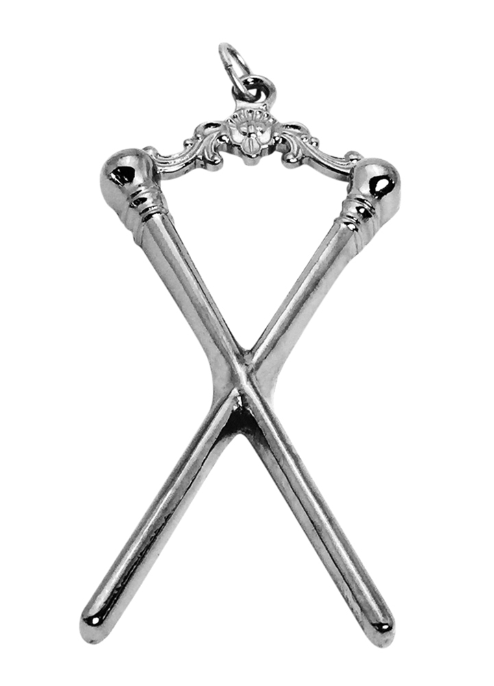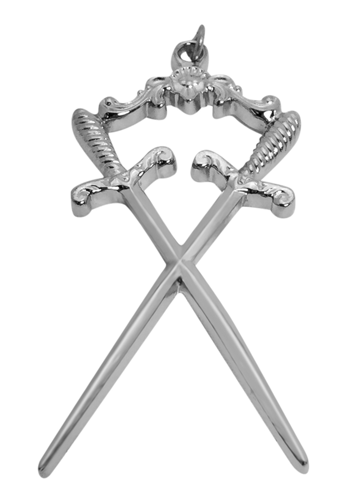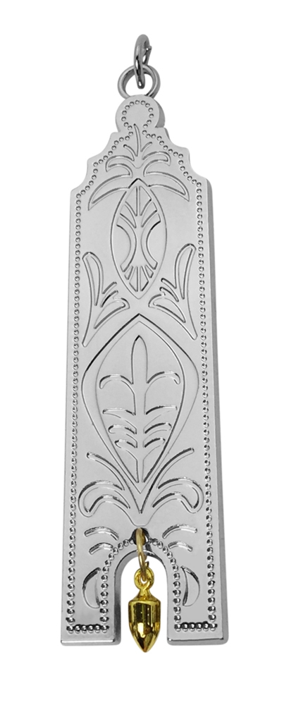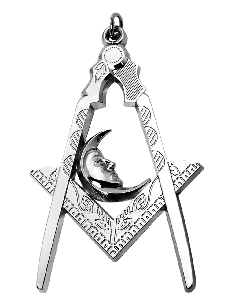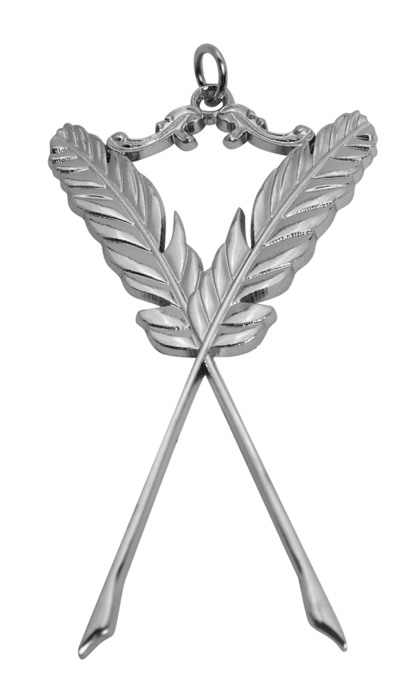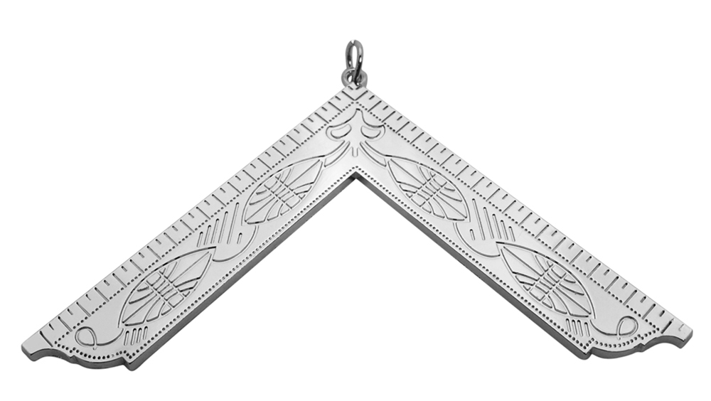 This silver-finish Masonic officer jewel will not tarnish and never needs polishing. Measuring approximately 3 inches tall, it is designed for dependable, long-term use in lodge officer regalia.