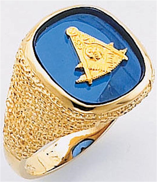 Past Master ring Square synthetic Sapphire stone & rounded edges, Square,Compass & Quadrant with Sun. Solid Back. Plain sides with textured design. This ring is a special order and takes 4 to 6 weeks for delivery. Be certain of your size due to a $25 return fee. * .
