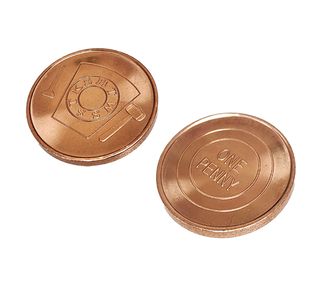 This Royal Arch Pocket Piece (RAM Coin) is a finely crafted token with a copper finish, measuring 1 5/16" in diameter. It can be purchased as-is or personalized with engraving.