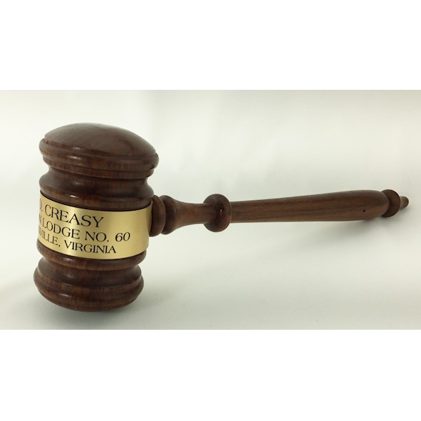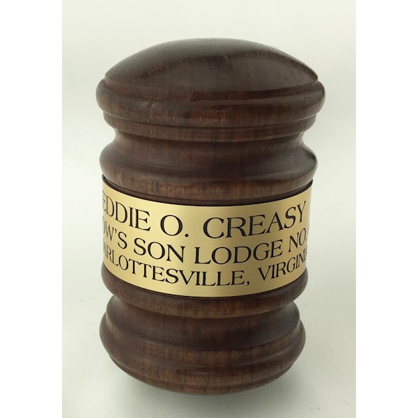 This comes with a protective bag. You can choose to have a gavel band or not. There are two types of gavel bands - German Silver or Gold tone. You can also have your gavel band engraved. Many engrave the following: Their Name, Lodge Name and number, Year(s) they served. Hammer Gavel Ladies Size 8 inch Walnut. When ordering a Gavel Band with the Gavel the price includes 3 lines of engraving. Please Allow 2-3 weeks delivery on engraved items.