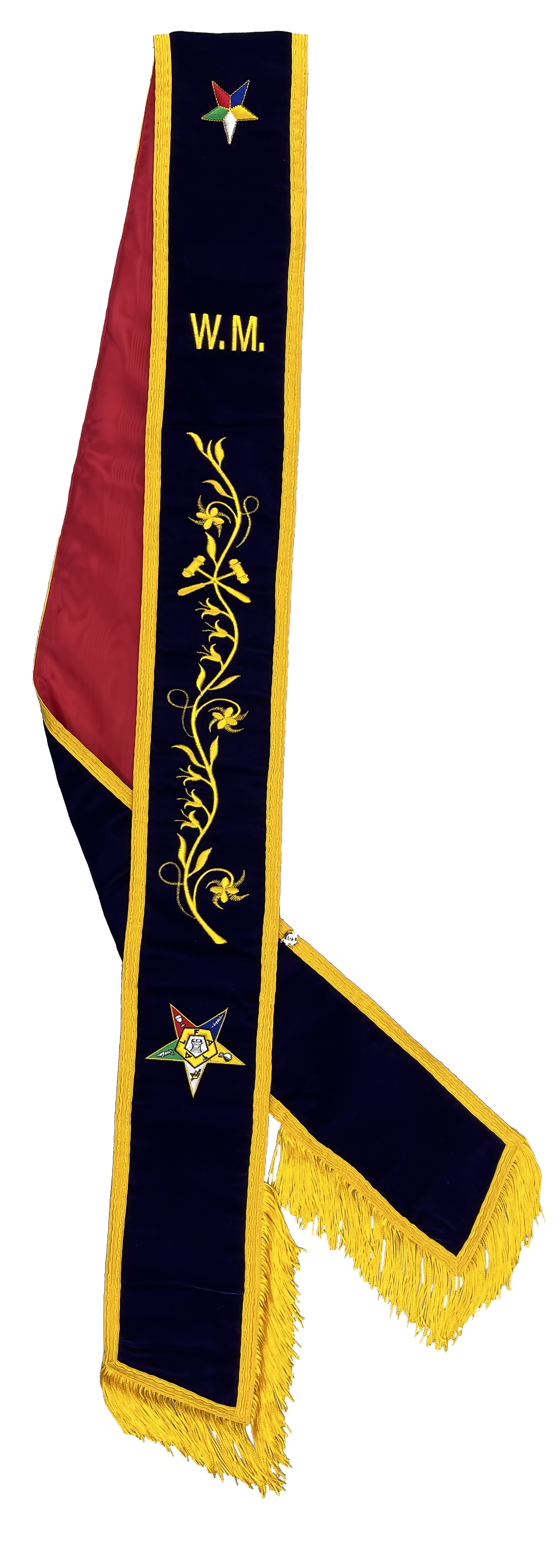 You will love Macoys American made Worthy Matron Sash. It is a beautiful majestic purple color and the velvet is soft. These sashes have adorned many of our Eastern Star ladies over the years. We take pride in the beautiful embroidered details of the vine work and crossed gavels. The Star at the top and at the crossing are embroidered with bold colors and is sure to make your sash standout. The fringe on the sash is a brilliant yellow-gold color. This is a must for all Worthy Matrons. You will love to step out the door for your meetings and ceremonies.