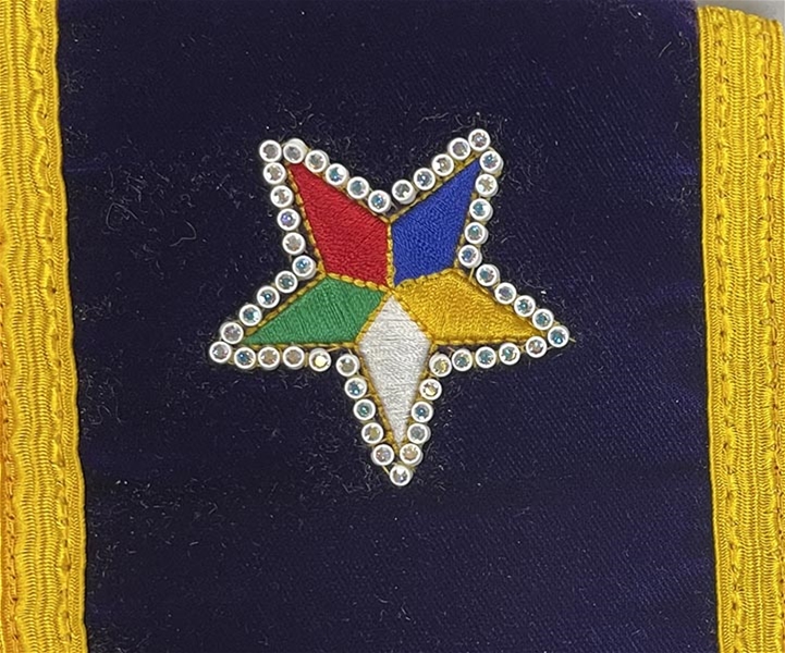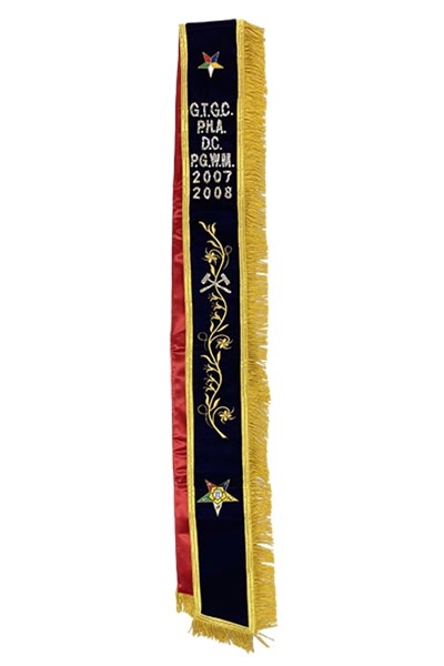 You will want to wear our Past Matron Velvet Sash with masterful embroidered stars at top of sash and crossing. It is a beautiful majestic color and the velvet is soft. These sashes have adorned many of our Eastern Star ladies over the years. Our sash has fringe along the side and bottom and is a brilliant yellow gold color. The beautifully embroidered star at the top and at the bottom is bold in color. You will love Macoy's American made Past Matron Sash. We take pride in the beautiful embroidered details of stars on our sash. This is a must for all Past Matrons. Be prepared when you step out in our sash for all eyes to be on you.