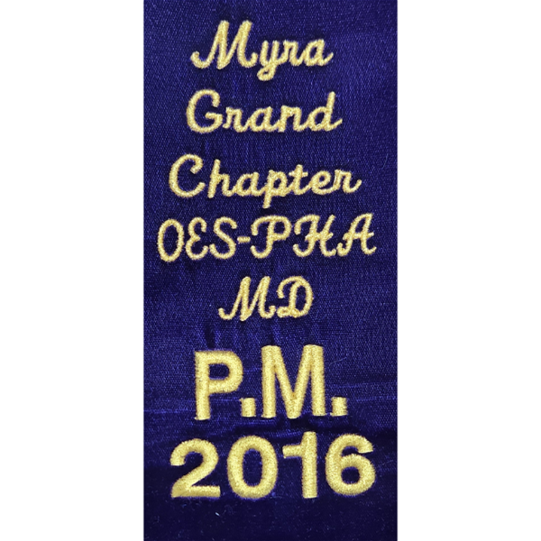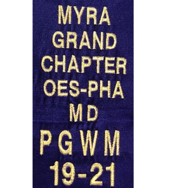 You will want to wear our Grand Velvet Sash with masterfully embroidered stars at top of sash and crossing. It is a beautiful majestic purple velvet, soft to the touch. These sashes have adorned many of our Eastern Star ladies over the years. Our sash has gold non-tarnish fringe along the side and bottom matching the gold non-tarnish braid. The beautiful rayon silk embroidered star at the top and at the bottom is bold in color. 7 letters or numbers are included in the price. Most common lettering is block. You will love Macoy's American made Grand Matron Sash, lined in red satin. We take pride in the beautifully embroidered details of stars on our sash. This is a must for all Grand Matrons. Be prepared when you step out in our sash for all eyes to be on you.