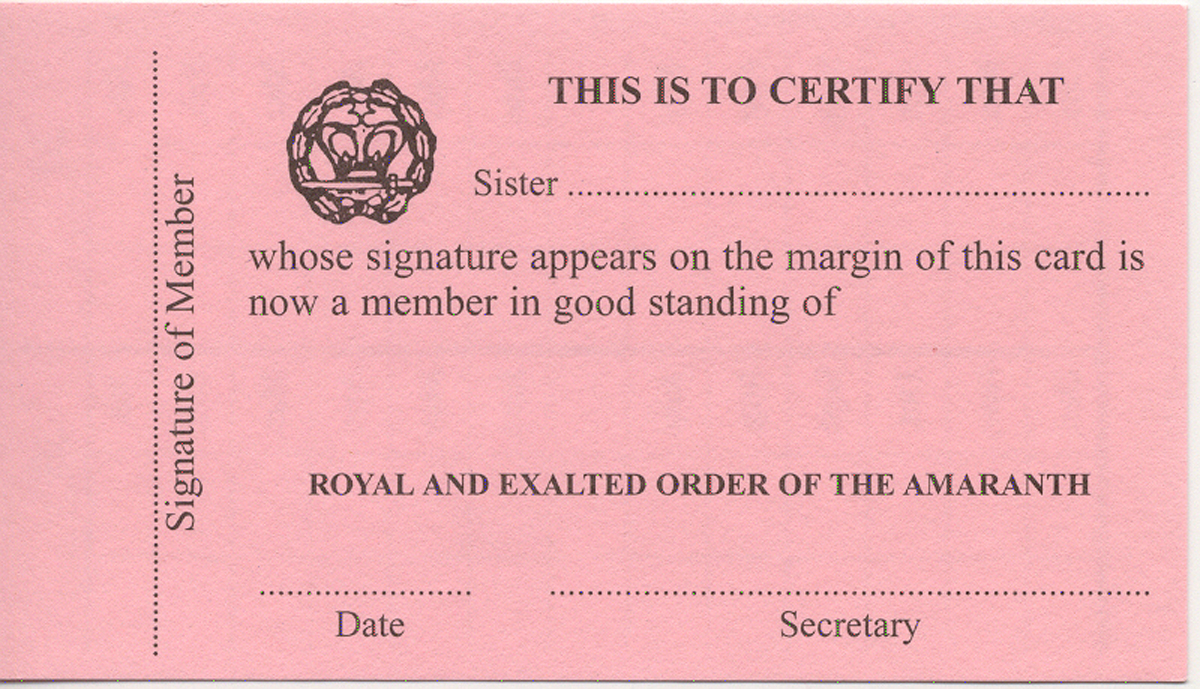 Join our email list and get great deals and save money.Click Here to Join. Order of Amaranth Dues Cards (10) Price: $3.50 SKU519AMAR - + (min 1) Add To Cart Add to wishlist Email a friend Tweet