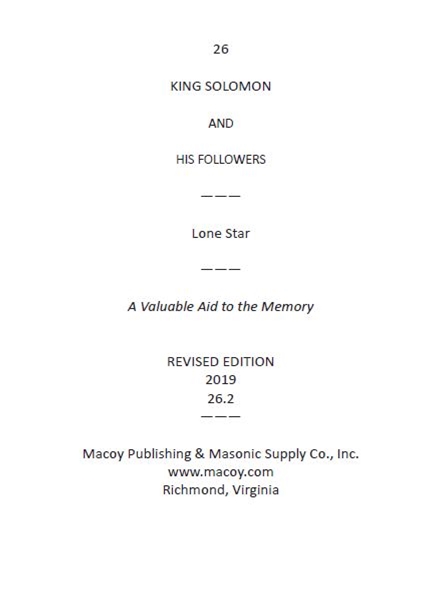 Texas Cipher - only official ritual book approved by the Grand Lodge of Texas A. F. & A. M. King Solomon & his followers Lone Star edition #26.02. November 2019 release date.